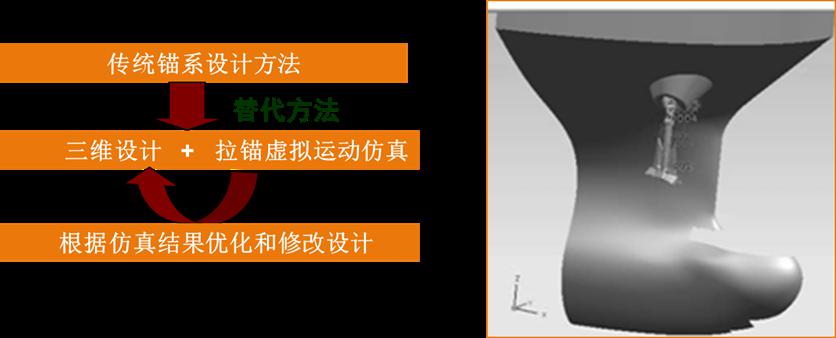 經(jīng)過與國內(nèi)行業(yè)權(quán)威設(shè)計院的合作過,并將該技術(shù)應(yīng)用于船舶建造中,對錨鏈筒、錨臺、錨唇、錨穴、錨、錨鏈、錨機、止鏈器、導(dǎo)鏈滾輪、船體等進(jìn)行三維設(shè)計和自動建模,實現(xiàn)了三維錨系計,保證了錨系設(shè)計中空間位置定位的準(zhǔn)確性,并通過三維軟件導(dǎo)出二維CAD圖紙,扭轉(zhuǎn)了一直以來二維圖紙與船廠錨系施工脫節(jié)的局面,極大提高了錨系設(shè)計的效率。除此之外,利用軟件的后期的仿真功能,模擬并預(yù)報收錨過程的動態(tài)效果并給出調(diào)整方案。
